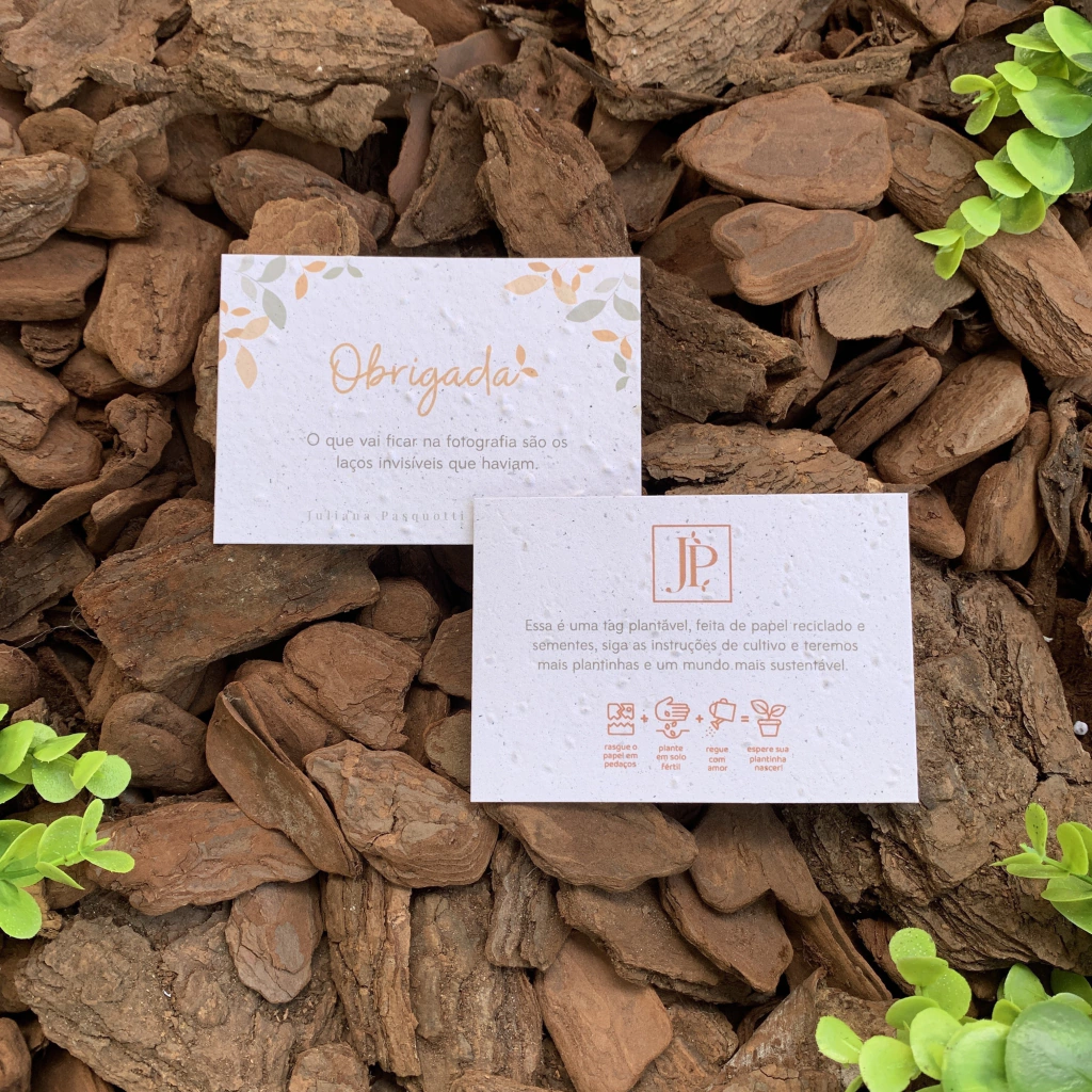 - Impresso frente e verso em impressoras a jato de tinta à base d'água para que não prejudique o solo, a germinação da semente e a saúde das plantas;